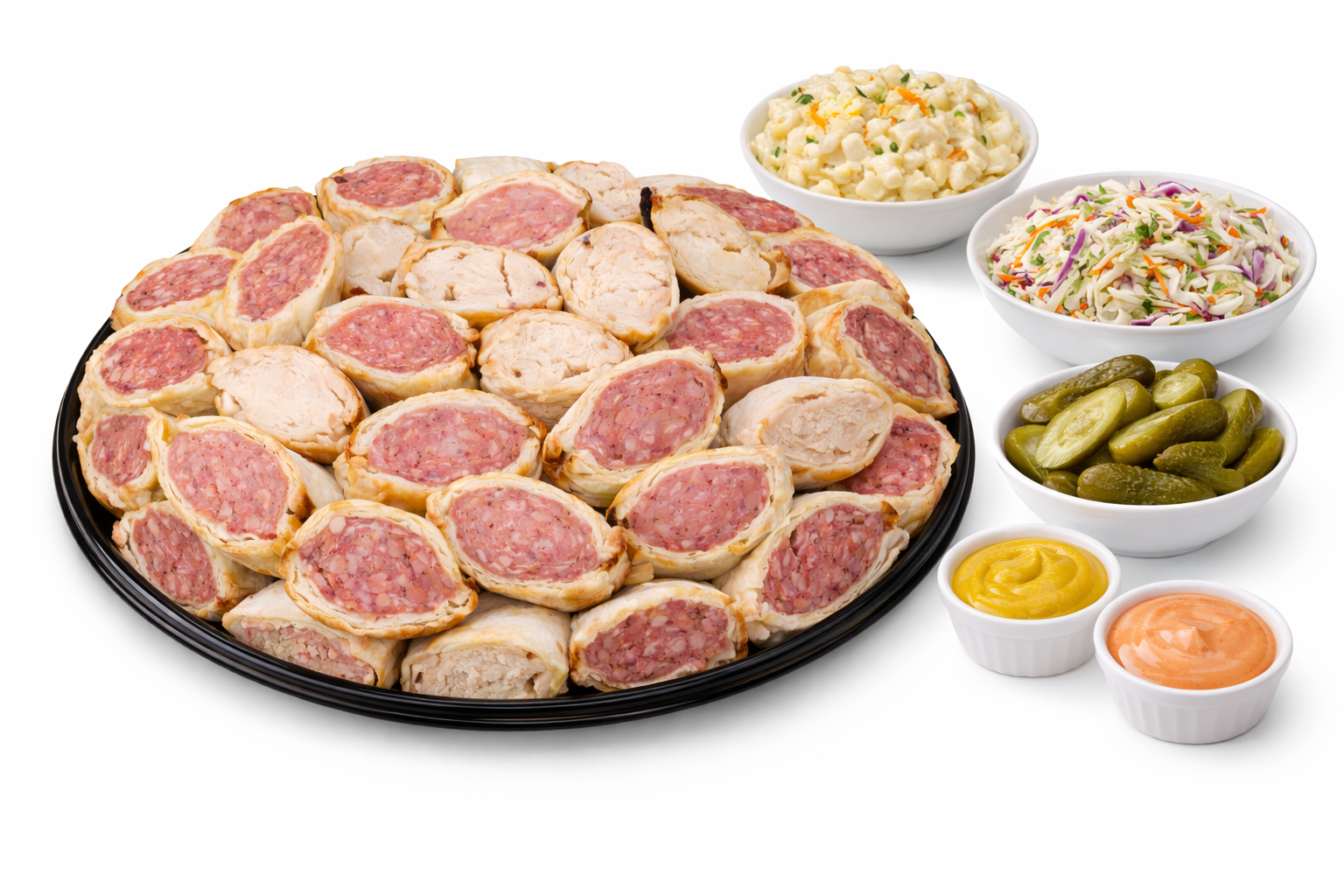 Beautifully arranged combination of deli sandwiches including your choice of: Homemade roast beef, homemade corned beef, Rumanian pastrami, fresh roasted turkey breast, smoked turkey breast and salami. Served in your choice of rye, club or whole wheat bread.