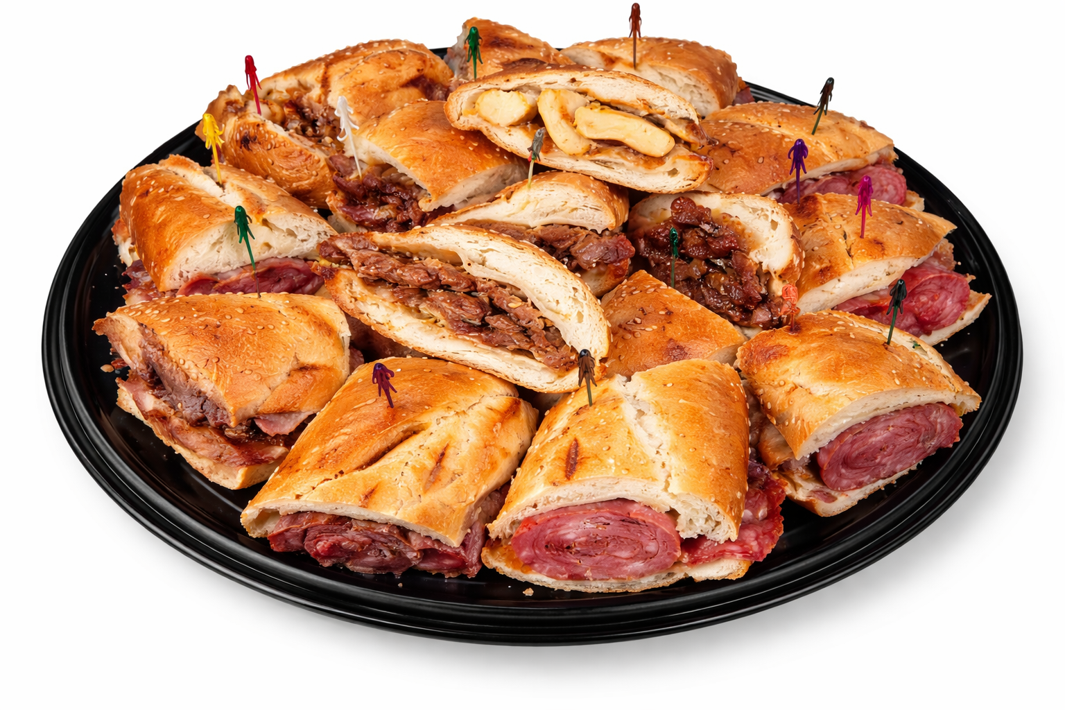 A delicious combination platter of our famous grilled sandwiches topped with sautéed onions and served on our delicious garlic club bread.