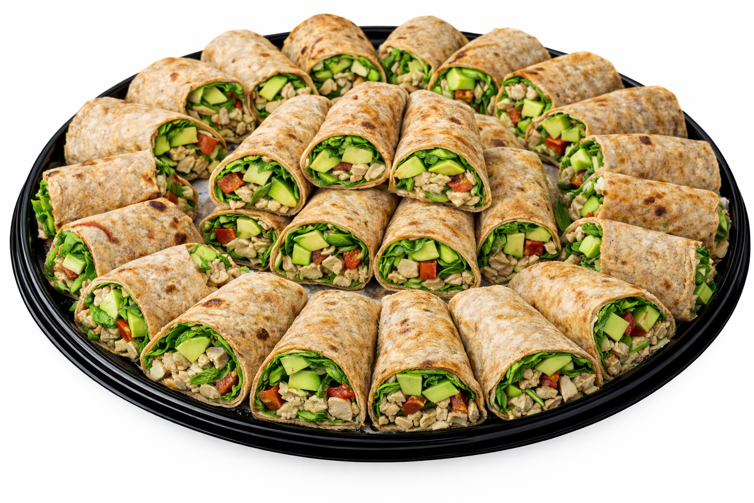Looking for the perfect alternative to a sandwich platter? Our wrap platter promises to please. Choice of: Grilled chicken, chicken schnitzel, sliced steak, pastrami, corned beef, roast beef, fresh turkey, smoked turkey, or grilled vegetables.